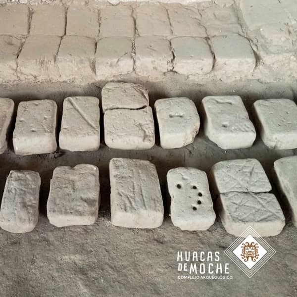 En muchos adobes se pueden identificar diversas marcas, probablemente utilizadas por los fabricantes para distinguir las contribuciones de los diferentes grupos de comunidades que participaron en la construcción de esta arquitectura imponente.